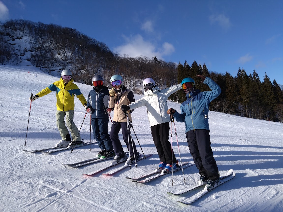 まずはシュテムターンのスキー開き出しを使ってターン前半からの弓なり姿勢を確認しましたね。