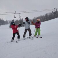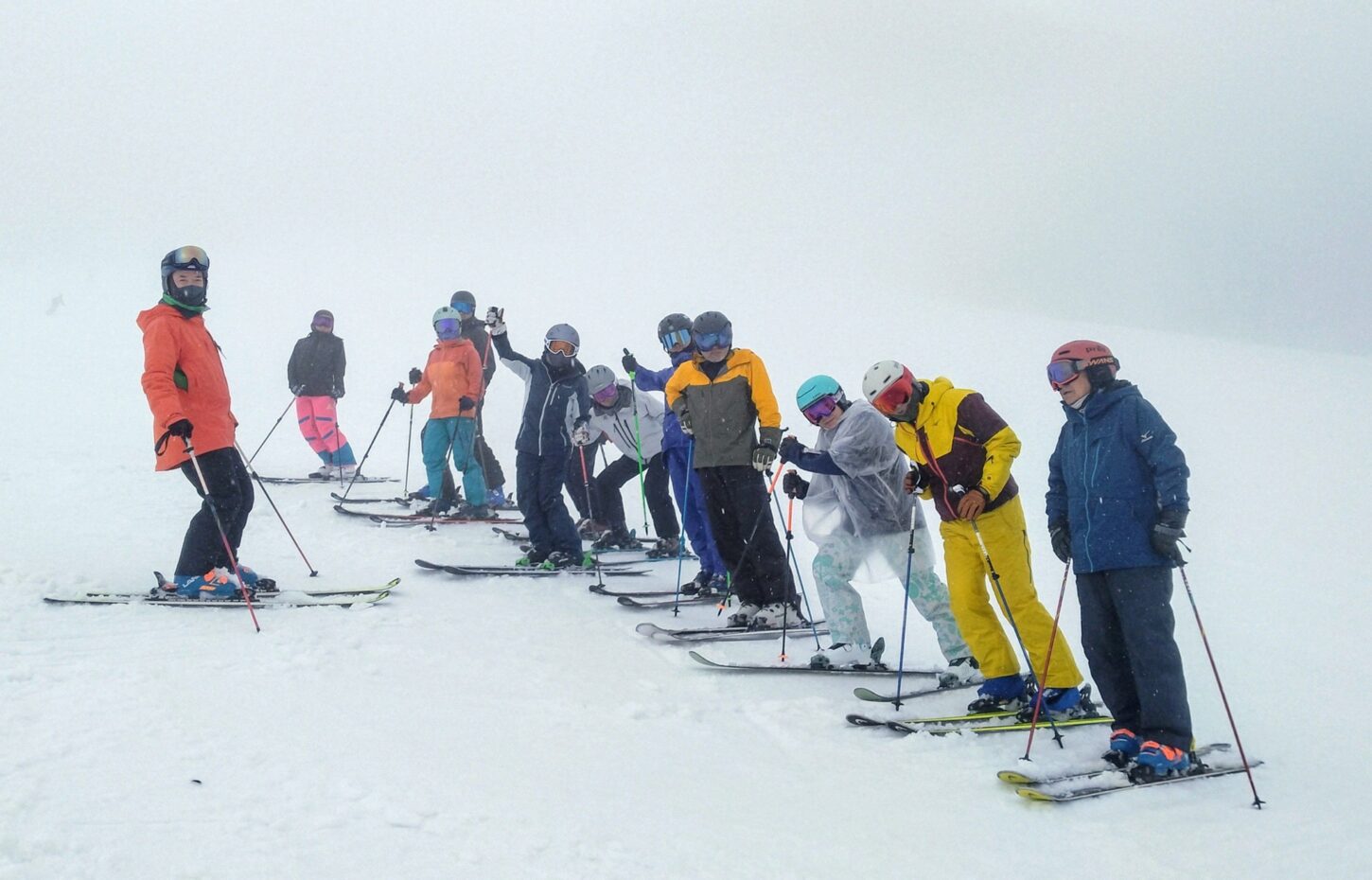 まずは前傾の入った直滑降からのスライドと、しっかりした捻りでスキーの走りを止められるかが重要です。