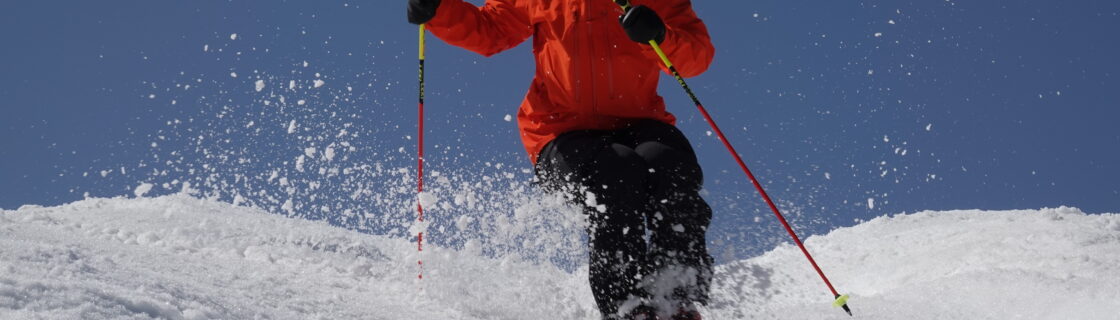 コブの中でも30度の外向を意識したピボット操作。コブ裏の急斜面を縦スライドに繋げてる為の縦ピボットで、左右のウエイトシフトの効いた良い滑りが出来たと思います。