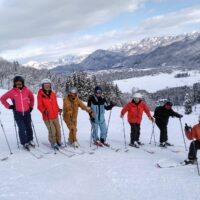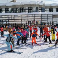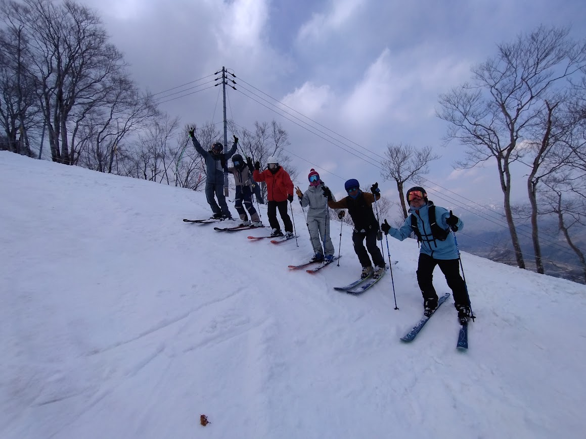まずはシュテムターンのスキー開き出しを使ってターン前半からの弓なり姿勢を確認しましたね。