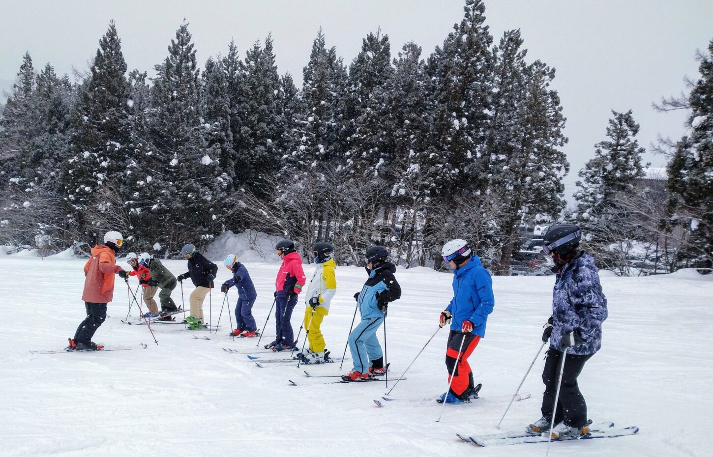 まずは、一切踏ん張らずにいずれ止まる角度までトップを山側へ向けていく練習を行いました。