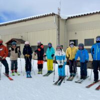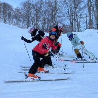 練習ドリルはハンズオンニーで背中の重さを、谷スキーにかけて安定した横スライドの練習しました。
