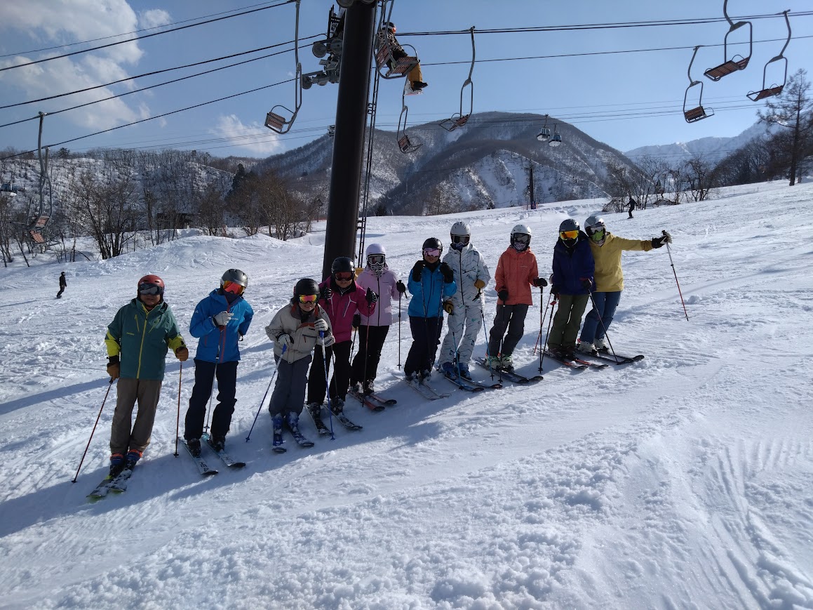 斜滑降から停止。テールが落ちないように止める練習を午前中は沢山やりしました。